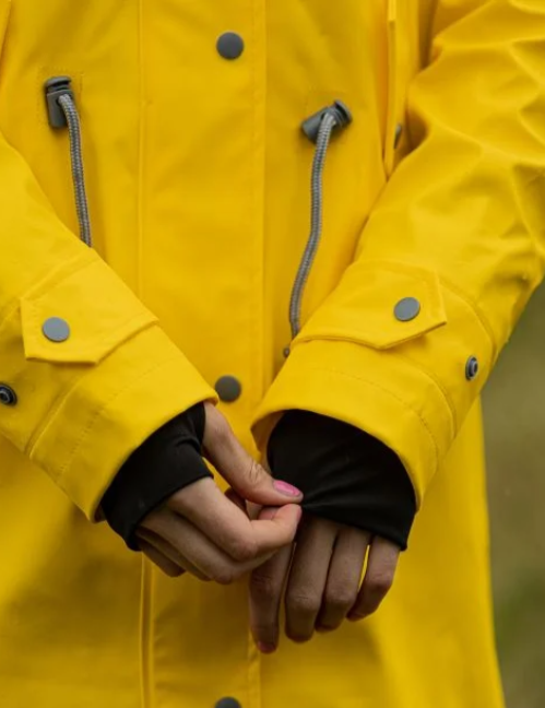 Härlig regnkappa för de yngre ryttarna. Vattentät. Tvåvägsdragkedja framtill. Ridsprund baktill med knappar. Reflexdetaljer. Yttermaterial 100% PU. Maskintvätt 40 grader.
